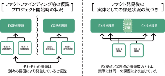 消費者意識の変化や市場拡大といった環境変化に対応するためシステム更改を検討しましたが、エスキュービズムの提案により、まずは顧客・従業員双方の課題や満足度を明確にし、将来像を描くDX推進プロジェクトを立ち上げました。